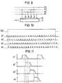 Fig. 9 zeigt eine an sich bekannte CCD-Speicherzelle zum Betreiben im Vierphasenbetrieb; bestehend aus einem Siliciumsubstrat 11, einer Si02-Schicht 12 und vier MOS-Kondensatorelektroden A, B, C, D. Mit «X» ist die Ladungstransportrichtung bezeichnet. Aus dem Impulsdiagramm der Fig. 10 ist die Art und Weise zu entnehmen, wie die Speicherzellen bzw. die vier Kanäle 1, 2, 3, 4 mit CCD-Taktsignalen ϕ1 bis ϕ4zu beaufschlagen sind. Bekanntlich sollen diese Signale zu diesem Zweck in der dargestellten Weise überlappen und eine allmählich fallende Flanke aufweisen. Diese Bedingung wird dadurch erreicht, daß vor den Speichern 1 bis 4 entsprechend beschaltete Treiber 65 vorgesehen sind.9 shows a known CCD memory cell for operation in four-phase operation; consisting of a