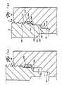 - These secondary seal surfaces 24a and 25a are formed on slightly different tapers so that they may engage and seal with each other in a noncritical manner as the pin moves to its final made-up position shown in Figures and 7a. Prior to reaching this position, theseal material 22a will have been placed under compression and extruded through the space between the two secondary seal surfaces 24a and 25a as the pin threads move into and reduce the volume within thegroove 23a. The excess seal material will extrude between the two secondary seal surfaces and as the pin is rotating relative to the box, the extruded material will also be torn, usually at a number of places.