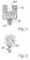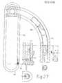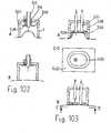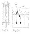 Auch die Anhebung des Zentralstiftes in der Saugglokke kann über einen Kugelraster das Tiefertreten einer Kanüle erlauben, was in diesem anderen Lösungsbeipiel unter Einwirkung von Druckgas auf einen Dichtkolben im Magazinschlauch geschieht.(Fig.18,Fig.19). Abplattung oder ovale Formgebung von Magazin und Kanülen können als Drehsicherung dienen und erlauben die Wirksamkeit der Gelenkelemente zwischen den Kanülen sowie eine bessere Anlage und Abdichtung der arzneiführenden Kanäle(Fig.27).Raising the central pin in the suction bell can also allow a cannula to be lowered by means of a ball grid, which in this other solution example takes place under the action of compressed gas on a sealing piston in the magazine hose (Fig. 18, Fig. 19). Flattening or oval shape of the magazine and cannulas can serve as a rotation lock and allow the effectiveness of the joint elements between the cannulas as well as better positioning and sealing of the medicinal channels (Fig. 27).