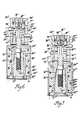 - Specifically, in the normally low-pressure version the valve assembly 10' is reversed relative to the solenoid 20', and the spring 80', which is now of larger diameter, is positioned about the solenoid plunger 66' between a radially outwardly projectingannular seat 100 formed thereon and an annular seat 102. The annular seat 102 is formed on the bobbin end piece 54' at a place formerly occupied by the lower end of the plunger bushing 62', which has been shortened accordingly and remains fixed in the bore 64'.