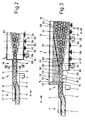 Die die Förderabschnitte des Zwischenförderers bildenden und in einer gemeinsamen Transportrichtung umlaufenden bzw. eine gemeinsame Transportrichtung aufweisenden Transportelemente können bei der Erfindung auch jeweils aus einer Gruppe von Röllchen bestehen, die in jeder Gruppe in Transportrichtung aufeinander folgend vorgesehen und von Gruppe zu Gruppe um eine horizontale, senkrecht zur Transportrichtung liegende Achse mit unterschiedlicher Geschwindigkeit angetrieben sind. Eine mögliche Ausbildung dieser Ausführungsform der Erfindung bestünde bespielsweise darin, daß die Transportbänder der Zwischenförderer 2 oder 2′ jeweils durch wenigstens eine solche Gruppe von Röllchen ersetzt sind, wobei dann an den Übergängen Ü die dortigen Gleitbleche 44 entfallen könnten.In the case of the invention, the transport elements forming the conveyor sections of the intermediate conveyor and rotating in a common transport direction or having a common transport direction can each consist of a group of rollers, which are provided in each group in succession in the transport direction and from group to group around a horizontal, Axis perpendicular to the direction of transport are driven at different speeds. A possible embodiment of this embodiment of the invention would be, for example, that the conveyor belts of the