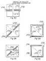 - Further preferred embodiment bolometers and arrays are illustrated in plan views in Figures 9a-e; these plan views are analogs of Figure 5a forbolometer 140 and show the suspended resistor, leads, and interconnect to the underlying substrate containing the load resistor, signal voltage amplifier, and addressing. In particular, the upper electrode gap analogous to gap 172 ofbolometer 140 is indicated by abroken line 272 in each of Figurés 9a-e, and the interconnects to the substrate analogous tointerconnects 156 and 158 ofbolometer 140 are indicated by 256 and 258. Similarly, the analogs ofleads 170 and 174 are indicated by 270 and 274; note that in the preferred embodiment of Figure 9d the leads are bifurcated.