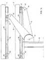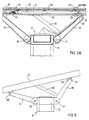 Aus den Fig. 2a und 2b und der Fig. 7, die zu einer einzigen Figur zusammengesetzt werden können, ergeben sich Einzelheiten für die Verstellung der Stützeinrichtungen 14 und 15. Die Stützeinrichtungen 14 und 15 haben an ihren der Zarge 12 abgekehrten Kanten und zwar nahe ihren äußeren rechten und linken Enden, je zwei Laschen 20, die starr an den Stützeinrichtungen 14 und 15 befestigt sind.2a and 2b and FIG. 7, which can be put together to form a single figure, provide details for the adjustment of the