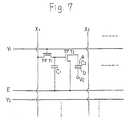 - Referring to Figures 1 and 2, the electrode lines X₁, X₂ and so on are bus lines for data signals, and the lines Y₁, Y₂ and so on are also bus lines for scanning signals. These electrode lines X and Y are crossed in an electrically isolated state, that is, with the interposition of insulating films, hereinafter referred to as "crossover". A first TFT₁ is located adjacent to one of the crossoverswhose gate is connected to the line Y (Y₁) and whose source is connected to the line X (X₁). The drain of the TFT₁ is connected to the gate of a second TFT₂ that functions as a second three-terminal element. The TFT₂ is connected to a signal storing capacitor C₁ whose other electrode is earthed.