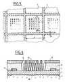 En référence aux figures 4 et 5, on décrit maintenant une source d'électrons conforme à l'invention. Dans cette réalisation, les conducteurs cathodiques 5 présentent une structure en treillis. Les mailles du treillis peuvent être de géométrie quelconque. Dans la réalisation représentée, les mailles du treillis sont carrées. Le pas de la maille p est, par exemple, d'environ 50 micromètres et la largeur d des pistes conductrices formant le treillis est par exemple d'environ 5 micromètres. Ces pistes conductrices sont de préférence métalliques, par exemple en Al, Mo, Cr, Nb ou autre. Un conducteur cathodique 5 présente une largeur de 400 micromètres, les conducteurs cathodiques étant séparés les uns des autres d'une distance égale à 50 micromètres environ. On comprend donc qu'une zone de croisement d'un conducteur cathodique 5 avec une grille 10 (de largeur égale à 300 micromètres) recouvre plusieurs mailles du treillis. Dans ces conditions, chaque zone de recouvrement d'un conducteur cathodique 5 avec une grille 10 comprend 48 mailles. Le non fonctionnement d'une maille dû à des courts-circuits entre la grille 10 et des micropointes ne perturbe l'ensemble que dans la proportion de 1/48, ce qui n'a pas d'effet notable.With reference to FIGS. 4 and 5, a source of electrons according to the invention will now be described. In this embodiment, the