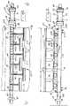 - Yet another arrangement is shown in Fig. 9C. Here, theblades 36 are arranged end to end. The cantilever support arms for these blades can all be of the same construction and length and the blades are all oriented at 90° to the cantilever arm axes. Any of the cantilever arms can be used. It will be recognized that a substantial number of other, different patterns for the blades, extending acrossbelt 21, can be readily obtained. Fig. 9 shows all blades of uniform size, but different blade widths and varying blade angles may be used in one belt cleaner when desired.