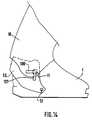 Il va de soi que la lumière oblongue caractéristique (20) est positionnée de manière symétrique sur chacune des deux faces latérales de la chaussure, respectivement interne et externe. Pour la commodité du dessin et pour faciliter la compréhension, on n'a représenté qu'une seule lumière oblongue ; mais les mêmes éléments se retrouvent de manière symétrique sur l'autre face.It goes without saying that the characteristic oblong lumen (20) is positioned symmetrically on each of the two lateral faces of the shoe, respectively internal and external. For the convenience of the drawing and to facilitate understanding, only one oblong light has been shown; but the same elements are found symmetrically on the other side.