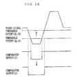 The pulse signals S1 - S4 generated in the abovedescribed manner are applied to the switchingcircuits111, 112, 361 and 362. The switchingcircuits 111 and 112are closed when the pulse signals S1 and S2 are negative,respectively, and the integratingcircuit 12 ischarged/discharged. The average potential provided bythe integratedcircuit 12 is used as the negativethreshold potential of thecomparator 9.