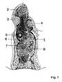Figur 1 zeigt Beispiele von tumorösen Veränderungen beispielsweise im Rektum 1, bei welchen ein erfindungsgemäßes Instrument beispielsweise angewendet werden kann, und zwar ulzerierende Karzinome 2, villöse Adenome 3, polypoide Karzinome 4, sessile adenomatöse Polypen 5, 6, 7 und/oder gestielte adenomatöse Polypen 8. Bei Anwendung von bisher bekannten Instrumenten können derartige tumoröse Veränderungen nicht so präzise und nicht ohne ständigem Wechseln von Schneide- und Koagulationsinstrumenten reseziert werden.FIG. 1 shows examples of tumorous changes, for example in