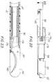 - As shown in Figs. 16-19 the endoscopicsurgical instrument 10 preferably includes anabutment surface 174 at its upper proximal region for preventing theblade members 140, 142 from becoming overstroked. Referring to Fig. 19, there is illustrated blade members of an endoscopic surgical instrument which are overstroked. Overstroke occurs when one pivoting blade or both pivoting blades rotate past a desired closed position. As illustrated in Fig. 19 the blade has rotated past the closed position such that the point where the maximum amount of blade surface contacts is surpassed.