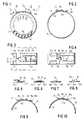 - The bridgingportion 23 is provided with anaperture 25 for engagement by adetent member 26 formed in the inner band end portion 21a. Thedetent member 26 illustrated in the embodiment of Figures 1 - 10 is of part circular shape and is formed by pressing out the inner band end material after a cut along the front part of thedetent member 26. However, it is understood that the particular shape and configuration of thedetent member 26 may also differ, for example, may be of rectangular, triangular, oval or full circular configuration or may be a hook-like member as described in connection with the support hooks in my prior U.S. Patent 4,299,012. In each case, theaperture 25 will have to be adapted to the particular configuration of thedetent member 26. As can also be seen in Figure 7, the outer surface of thedetent member 26 slopes downwardly toward the inner band end portion in a direction opposite to the free end of the inner band portion 21a so as to facilitate thedetent member 26 to slide underneath the bridgingportion 23. With the application of opening forces by conventional pliers or pincer-like tools at the tool-engaging surfaces of the inner and outer band end portions, thedetent member 26 will slide underneath the bridgingportion 23 and, in the course thereof, may even lift slightly the outerband end portion 21b which is possible due to its springiness.