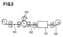 Fig. 3 ist eine schematische Darstellung, welche ein Verfahrenzur Herstellung der hinteren Schicht 1 zeigt. EinePolyäthylenschicht 100 mit einer Dicke von ungefähr 20 µm,welche Partikel eines anorganischen Füllers, beispielsweiseCalciumcarbonat oder Bariumsulfat, von 30 - 80 Gew.-% aufweist,wird in eine Streckmaschine 101 eingeführt, durchwelche die Schicht 100 sowohl in ihrer Länge als auch in ihrerBreite unter Erwärmung um 100 % gestreckt unddann gekühlt wird, um eine gestreckte Schicht 102 mit feinenluftdurchlässigen Poren 7 zu erhalten. Dabei werden dieentgegengesetzt liegenden Oberflächen aufgerauht. Die gestreckteSchicht 102 wird zwischen einem Paar Prägewalzen103 durchgeführt, welche eine Kombination einer Musterrollemit einem darauf angeordneten gestreiften Muster, wie es inFigur 2a dargestellt ist, und einer glatten Oberflächenrolleaufweist, wobei die aufgerauhten Oberflächen teilweise durch ihre Aufheizung unter einem bestimmten Druck geglättet werden,um eine luftdurchlässige Schicht 104 zu erhalten, dieein Oberflächenmuster hat, welches durch die rauhen Oberflächenzonenund die glatten Oberflächenzonen bestimmt ist. Anschließendwird diese Schicht 104 geeignet geschnitten, umeinzelne hintere Schichten 1 zu erhalten.3 is a schematic diagram showing a methodfor the production of the