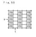- Embodiment 74 is an example of using two-dimensionallow-pass filters instead of one-dimensional low-pass filtersinembodiment 64. In Fig.49, YH' signal at the position ofgreen pixel of row s, column t, for example, is calculatedby equation (123).YH'(s,t) = G(s,t) × (Y'LPF(s,t)/GLPF(s,t))