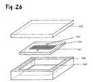 - As for the package shown in Figure27, apackaging operation is performed as follows: an objectto be packaged is first put into therecessed portion3702b, the ceramic coveringmember3701 is overlaidthereon, and finally the container is wholly heated upto a temperature at which theglass3702a melts. Sucha packaging operation is described, for example, inNikkei Electronics, Jan. 7, 1991 (No. 517), pp. 167.