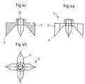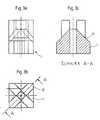Bei den in Fig. 3a bis 3c und 4a bis 4c gezeigten Ausführungsbeispielensind der Grundkörper und der Spreizkörper derart verbessert,daß zwischen den Spreizelementen und dem Mehrkantrohrkeine punktartigen Berührungen, sondern möglichst großflächigeBerührungen auftreten. Dadurch wird die Wahrscheinlichkeit vonAusbeulungen aufgrund sehr hoher Haltekräfte verringert, so daßinsgesamt höhere Haltekräfte ermöglicht werden. Der in den Fig.3a bis 3c gezeigte Grundkörper ist ein sehr einfach aufgebauter,im wesentlichen aus einem rechteckigen Profilstück gefertigterKörper, der eine Zentralbohrung zur Aufnahme eines Schraubeinsatzessowie radial von der Mitte zu den Ecken verlaufendeStützflächen 12 aufweist. Die Stützflächen sind in etwa in einemWinkel von 45° gezeigt, wie die Schnittansicht in Fig. 3c zeigt,die den Schnitt entlang der Linie A-A gemäß Fig. 3b darstellt.Dieser mit geringem wirtschaftlichen Aufwand und einfachherstellbare Grundkörper 1 wird mit einem wie in den Fig. 4a bis4c gezeigten Spreizkörper bestückt. Dieser ist propellerartigmit vier Spreizelementen versehen, die einen im wesentlichendreieckigen Querschnitt aufweisen. Fig. 4a zeigt eine Seitenansichtdes Spreizkörpers, Fig. 4b eine Draufsicht und Fig. 4c eine Schnittansicht. Die Neigung der Innenflächen der Spreizelemente2 ist im gezeigten Ausführungsbeispiel größer als dieNeigung der Stützflächen 12 am Grundkörper, beispielsweise 50°.Die radialen Außenkanten der Spreizelemente 2 sind gerade unddie Spreizelemente 2 sind zu den radialen Außenkanten hinabgeschrägt, beispielsweise mit Abschrägungen von jeweils 30°.Im Zentrum weist der Spreizkörper 5 eine Gewindebohrung 22 auf.Der Spreizkörper 5 in den in den Fig. 4a bis 4c gezeigtenAusführungen ist ebenfalls äußerst einfach aufgebaut und machtdarüber hinaus die Verwendung einer zusätzlichen Mutter für dieSpannschraube überflüssig. Aufgrund der Geometrie derSpreizelemente 2 kommen diese nicht nur mit den Spreizspitzen 6mit den Innenkanten des Mehrkantrohres in Verbindung, sondernüber bestimmte Längen der radialen Außenkanten. Die Haltekräfteverteilen sich somit auf größere Flächen, so daß auch beigrößeren Haltekräften Ausbeulungen vermieden werden können. Fürdas gezeigte Ausführungsbeispiel ist die besondere Ausgestaltungder Spreizelemente 2 in Abstimmung auf den gezeigten Grundkörper1 wesentlich.In the exemplary embodiments shown in FIGS. 3a to 3c and 4a to 4cthe base body and the expansion body are improved in such a waythat between the expansion elements and the polygonal tubeno point-like contact, but as large a surface as possibleTouches occur. This will make the probability ofBulges reduced due to very high holding forces, so thatoverall higher holding forces are made possible. The in the Fig.3a to 3c is a very simple structure,essentially made of a rectangular profile pieceBody that has a central bore for receiving a screw insertand radially from the center to the cornersHas support surfaces 12. The support surfaces are roughly in oneAn angle of 45 ° is shown, as the sectional view in FIG. 3c shows.which shows the section along the line A-A of Fig. 3b.This with little economic effort and simple