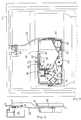 - In turn, the lowerfree end 48 of thevertical arm 44 of thelever 42 is housed on the free end of arectilinear arm 49 ofanother lever 50 situated below it, which is pivoted at itsother end on astud 51 fixed below thefirst electromagnet 38and connected to the overturninglid 32 of thecontainer 18for the single dose of powdered or liquid detergent, in sucha way that such lever 50 can be rotated limitedly around thisfulcrum point, against the action of a torsion spring (notshown) wound around thestud 51 and urging the same levertoward its rest position of the Fig. 3, by causing at thesame time the lid to be displaced on different operativepositions thereof, which will be described in detail in Figs.8-13. In this manner, thefirst electromagnet 38 is able todisplace with itsmovable core 40 both thelevers 42 and 50simultaneously from the one to the other one of their twooperative positions, respectively from the first restposition thereof, illustrated by the Fig. 3, in which thelever 42 has its shapedend 46 engaging therecess 47,thereby keeping thecontainer 15 into its engaged conditionin which the powdered detergent contained therein may be distributed by a timed controlled operation into the tank, inthe manner hereinafter described, while in turn the lever 50isn't pushed downward by the overhanginglever 42 andtherefore keeps the overturninglid 32 at a closed conditionthereof, engaging thecontainer 18, thereby preventing itfrom being opened, to the operation position thereof, notevident, in which thelever 42 is rotated around itsfulcrumpoint 43, thereby disengaging its shapedend 46 from therecess 47 and therefore permitting thecontainer 15 to beopened and filled with the powdered detergent in the mannerhereinafter described, while in turn the lever 50 is pusheddownward by the consequent lowering of the lowerfree end 48of thevertical arm 44 of thelever 42, so that such lever 50by rotating in the direction indicated by the arrow A causesthe displacement of the overturninglid 32 of thecontainer18 in the released position thereof, in which it is openedand therefore permits the detergent contained therein to bedistributed in the tank. Besides, thesecond electromagnet 39is arranged at an inclined position thereof and connected tothe control means for the liquidadditive detergent container17, which are constituted preferably by a conventional valve(not shown), in such a way that to actuate the same at anopened and closed position thereof for determining orpreventing the distribution of such liquid additivedetergents into the tank. Finally, afurther lever 52 ishoused on the back side of thecontainer 15, at a positionbelow thecontainer 15 and co-operating therewith, whichlever is interconnected by means of aflexible cable 53 withthelock 54 of thedoor 11 of the dish-washing machine, andis pivoted rotatable thereon in such a way as to be actuatedby thecontainer 15 in two different operative positionsthereof, respectively from a first position in which it pullstheflexible cable 53 downward, in the direction of the arrowB of the Fig. 4, when thecontainer 15 is housed on its seatand engaged by thelever 42, in which condition acontrolmechanism 55 of conventional kind provided on the free end ofsuch cable 53 does not affect saidlock 54 and therefore any opening and closing operation of said door by means of saidlock is permitted, to a second operative position thereof inwhich thelever 52 displaces the cable upward, in thedirection of the arrow C of Fig. 4, when thecontainer 15 isreleased by thelever 42 and therefore moved to its openedposition, in which condition thecontrol mechanism 55 of thecable 53 affects thelock 54, thereby preventing thedoor 11from being closed.