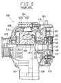 - Thehousing 2 is composed of a front housing (or driving housing) 11 and a rear housing (or rear frame) 12, which are made of aluminum die-castings and fastened by a plurality ofstud bolts 13 andnuts 14.
