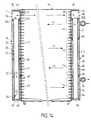 Par ailleurs, deux cloisons transversales annulaires 48 et 50sont prévues entre les parois 36 et 42 entre des endroitschoisis pour définir des compartiments annulaires danslesquels débouchent les tubes 12 du faisceau, grâce à desouvertures ménagées dans la paroi 36.In addition, two annular