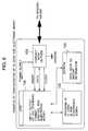 - More particularly, the embodiment shown in Fig. 8 includes the control circuit 3306 and the clock generation circuit 3307 for supplying electric power and a clock signal to the IC card 10 to activate the IC card 10, respectively, the reader/writer circuit 3308 for reading data from the IC card 10 and writing data into the IC card 10, the read/write control circuit 3309 for controlling operation of the reader/writer 3308, the ROM 3310 in which a program for causing the CPU 3315 to control the basis operation of IC card conforming to the ISO standard is stored, the data waveform formation and extraction circuit 3311 for performing formation of waveform of data and extraction of data read from the IC card 10, the I/O port 3312 for inputting/outputting data between the reader/writer circuit 3308 and the CPU 3315, the ROM 3313 in which a main program for electronic wallet process for causing the CPU 3315 to process electronic money stored in the IC card 10 is stored, the RAM 3314 utilized for data processing by the CPU 3315, the IC card check data memory unit 3316 in which ID data for examining whether information stored in the IC card 10 is electronic money information or not is stored and the CPU 3315 as a one-chip control LSI 331 having the electronic wallet function and integrated into one chip.