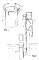 - Referring now to Fig. 4, awell conductor guide 40 is shown in greater detail. A plurality of well guides 40 may be incorporated in the well support framing as shown in Fig. 2. Eachguide 40 comprises acylindrical body 49 open at both ends. A flaredflange 51 welded about the upper end of thecylindrical body 49 acts as a stabbing guide for directing theconductor pipe 12 through theguide 40 as thepipe 12 is lowered to the seabed.Support tabs 52 welded to theguide flange 51 and thebody 49 of theguide 40 provide structural support for theguide flange 51. Theguides 40 extend through the bracingmembers 47 and are welded thereon providing a passageway forconductor pipes 12 through thewell support framing 42 and 43.