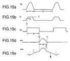 - When this pulse Vg is kept at the high level, the drainand the source of theFET 206 is conductive. Therefore,as shown in Fig. 15d, the drain voltage Vdr of theFET 206is roughly zero during this period tg.