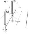 Die Beleuchtungseinrichtung weist ein Gehäuse G und einen Lichtstrahler L auf, wobei die Beleuchtungseinrichtung mit einer externen Stromversorgung SV und einer Einrichtung zum Blitzschutz B verbunden ist. Die Stromversorgung ist beispielsweise eine 230 Volt Wechselspannung. Der Blitzschutz B der Beleuchtungseinrichtung ist über den Mast durch eine Erdung am Fuße des Mastes realisiert.The lighting device has a housing G and a light emitter L, the lighting device being connected to an external power supply SV and a device for lightning protection B. The power supply is, for example, a 230 volt AC voltage. Lightning protection B of the lighting device is implemented via the mast by earthing at the foot of the mast.