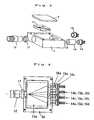 Example 2: Fabrication of optical transmitter andreceiver device having optical waveguide designed forfour branches for optical fiber having a core diameter of50 µm and four light emitting devices having wavelengthdifferent from each other (dedicated for transmission).A box (1a) of stainless steel as shown in Fig. 4was prepared nearly in the same manner as in Example 1.It had a left to right length of 31 mm, a bottom to topwidth of 39 mm and a thickness of 9 mm. Four holes forfixing light emitting device parts were made in the rightwall. The holes had a pitch (distance from the center ofone hole to the center of adjacent hole) of 6 mm each,which was the same as the distance between one branchedwaveguide port to an adjacent branched waveguide port,and the end portions of the supports of the lightemitting device parts were arranged on a straight line.
