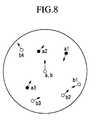 In the flowchart of FIG. 2, the step A6 is executed only one time.However, if it is demanded to further narrow down the matchingcharacteristic point pairs to correct ones, the matching characteristic pointpair list Q is used as the matching characteristic point pair candidate list Pso that the aforementioned processes are performed again by one or moretimes. Herein, the device detects proximity characteristic point pairs,whose differences in amounts of relatively characteristics meet theallowable error range, with respect to each of the matching characteristicpoint pairs registered in the matching characteristic point pair list Q. So,an examination is made as to whether a number of the above proximitycharacteristic point pairs occupy a prescribed rate or more of a total numberof the pairs registered in the matching characteristic point pair list Q or not.Thus, the device lists matching characteristic point pairs each related toproximity characteristic point pairs, a number of which is greater than theprescribed rate of the total number of pairs registered in the list Q, so as toregister them in another matching characteristic point pair list, which isdenoted by Q1, for example.