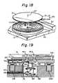 An example of the entire structure of a two-dimensional transfer stage apparatus with the lift mechanismas shown in Figs. 18 and 19 loaded thereon will be describedbriefly with reference to Fig. 20. The stage apparatus asshown in Fig. 20 is similar to a stage apparatus asdisclosed, for example, in Japanese Patent UnexaminedPublication No. 61-209,831 and the prior art technology maybe applied to the present invention with some small partsmodified or varied. Among the structuring parts as shown inFig. 20, the structuring parts having the same functions asthose of Figs. 1 and 5 are provided with the identicalreference numerals and symbols.