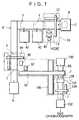 As shown in Fig. 3, acapper 18 is disposed on thestage14. Thecapper 18 includes a table 20, and a supportingpost22 extends upward from the table 20. The supportingpost 22is provided at its upper portion with amotor head 24 whichincludes a drivingshaft 26. The drivingshaft 26 extends ina vertical direction, and is supported by a casing of themotorhead 24 for vertical movement and rotational movement. Achuck28 is mounted to the lower end of the drivingshaft 26 through a coil spring. Thechuck 28 can be opened and closed. Themotorhead 24 further includes anair cylinder 30. A piston rod oftheair cylinder 30 is connected to the drivingshaft 26 suchthat the connection allows the drivingshaft 26 to rotate. Themotor head 24 is provided therein with an electric motor whichcan rotate both in forward and backward directions. A drivingforce of the electric motor is transmitted to the drivingshaft26 through a power transmission system (not shown) in themotorhead 24, thereby the drivingshaft 26 is rotated in forward andbackward directions together with thechuck 28. Thecapper 18further includes atorque sensor 32 and aproximity sensor 34.Thetorque sensor 32 detects a rotational torque of the drivingshaft 26. Theproximity sensor 34 detects thechuck 28 whenthechuck 28 is at its upper position as shown in Fig.3.