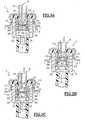 A la figure 3C, la tige de valve est actionnée, c'est à dire enfoncée à l'encontrede la force de rappel du ressort 16, ce qui provoque le dégagement du passagede sortie 17. Dans cette configuration, la pression à l'intérieur du compartiment23 est sensiblement égale à la pression exercée par le ressort taré 14. Lepiston 22 est dans une position d'équilibre telle, que l'orifice 40 estsensiblement en alignement avec l'orifice de sortie 26. Le produit entre dans lachambre de régulation par l'orifice 25, sort de la chambre de régulation parl'orifice 26, et est acheminé dans la partie tubulaire 10 de la tige de valve 9, viale passage de sortie 17.In FIG. 3C, the valve stem is actuated, that is to say pressed againstof the return force of the