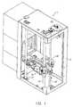 Figure 1 is a perspective view generallyillustrating the main components of a disk storageand retrieval apparatus. As shown, the apparatuscomprises anarray 2 of disk cartridge storage slots4. Although not shown in Figure 1 in order not toobscure the slots, each slot would normally have adisk cartridge positioned therein. Thecarriageassembly 10 which includes asleeve assembly 28 and agripper assembly (not visible in Fig. 1) is supportedon primary andsecondary shafts 12 and 14 and israised and lowered by rotation of aworm screw 16.The carriage assembly is moveable along theshafts 12and 14 byworm screw 16 to position thesleeveassembly 28 vertically in front of a selected one ofthe slots 4. As will described in greater detailherein, when so positioned, a pair of grippers on thegripper assembly can extend out of the sleeveassembly, grasp a disk cartridge and draw it into thesleeve assembly. The carriage is then moved toanother location, such as a recording, reproducing,and/or erasing station (not visible in Fig. 1) wherethe grippers are once again extended out of thesleeve assembly in order to insert the selected diskcartridge into the recording, reproducing, and/orerasing station.