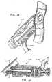 - Referring to FIGS. 22 and 23, when the surgeon is ready to complete theanastomosis, thesafety release slide 260 is moved proximally as indicated by arrow"C" in FIG. 23 thereby causingcamming surface 268 tocam spring 250 downwardlyaway fromshoulder 254 as indicated by arrow "D". Thereafter, the surgeon may depresscover 246 towards handle half-sections 212a and 212b, as indicated by arrow"E" in FIG. 24, causingactuator rod 232 to drive actuator 126 ofDLU 112 distally asindicated by arrow "F", thereby moving pusher member split half-sections 160 and160b distally to deformclips 158 as shown in FIGS. 25 and 26.