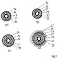 In Fig. 3 sind Querschnitte durch Hybridkabel mit mehreren elektrischen Leitern dargestellt.Die Kabel in den Teilbildern (a) und (b) bestehen bei einem Durchmesser vonbeispielsweise 3-4 mm jeweils aus einer polymeren optischen Faser 20, in einem glatteninneren Rohr 21, das koaxial in einem äußeren Wellrohr 22 geführt ist Beide Rohre 21, 22bestehen aus Metall und dienen als elektrische Leiter, die durch eine dazwischenangeordnete geschäumte oder kompakte Isolierung 23 voneinander beabstandet sind.Außenseitig ist das Rohr 22 gleichfalls mit einer Isolierung 24 versehen.In Fig. 3 cross sections through hybrid cables with several electrical conductors are shown.The cables in drawing files (a) and (b) have a diameter offor example 3-4 mm each from a polymeric