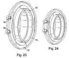 Perspective views of a fitting according to the present invention are shown inFigures 23 and 24. These illustrate aflange 130 extending radially outwardly from asleeve 132. The sleeve extends on both sides of the flange. A raisedrim 134extends around the outer circumference of each end of the sleeve.Electricalterminals 136 and 138 allow current to be connected to a heating wire embedded inthe surface of the flange adapted to engage with the chamber wall.