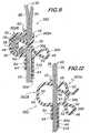 - The construction of thestrips 402A and 402B can best be seen in Fig. 13. In particular,thetongue strip 402A is an elongated member which includes an elongated arcuateupper flangesection 204, anupper hinge section 206, an elongated arcuatelower flange section 208, alowerhinge section 210, and a central projectingtongue section 212. Thestrip 402A is segmented toform a plurality of shortlength segment sections 404A, each of which is separated from itsimmediately adjacent section by aslit 406A. Eachslit 406A extends partially through thetongue strip 402A in a plane which is perpendicular to the longitudinal axis of thestrip 402A.To that end eachslit 406A extends fully through thetongue section 212, fully through theadjacent hinge sections 206 and 210, but only partially through the arcuateupper flange section204 and partially through the arcuatelower flange section 208, to aterminus point 408immediately adjacent the edges of those sections. The material making up thestrip 402Abetween the edge of theflange 204 and the terminus points 408 forms a plurality offlexurejoints 410 thereat. In a similar manner, the material making up thestrip 402A between theedge of theflange 208 and the terminus points 408 form aplurality flexure joints 410 thereat.The flexure joints 410 enable thesegment sections 404A of theclosure strip 402A to flex orbend with respect to the longitudinal axis about them. In accordance with one preferredembodiment of this invention theslits 406A of thestrip 402A are equidistantly spaced, fromone another.