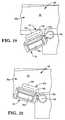 - It should be appreciated that thescanner 24 may be moved from itsassisted scanner position to its self-service scanner position in other manners.In particular, as shown in FIG. 17, thescanner 24 may be embodied as aknown "flatbed" scanner (hereinafter designated as scanner 24') whichcontains a single, horizontal scanning aperture similar to thehorizontalscanning window 24a. In such a configuration, it is not necessary to rotate thescanner 24' between its assisted and self-service positions due to the absenceof thevertical scanning window 24b. Hence, the scanner 24' may be slidablysecured to theterminal base 34 in order to be slid between its assistedscanner position (as shown in phantom lines in FIG. 17) and its self-servicescanner position (as shown in solid lines in FIG. 17). It should be appreciatedthat, as shown in phantom lines in FIG. 17, thepersonnel interface terminal 76is mounted on a support such as a pole or the like in conjunction with use ofthe scanner 24' due to the absence of thehousing 82.