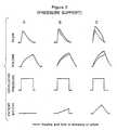 - With pressure support methods of ventilatoryassist (PS), the delivered pressure is a predeterminedfunction of time, usually an intended square wavepressure beginning at the onset of inspiration and terminatingas flow rate declines to a specific amount.The pressure delivered is, therefore, independent ofhow much inspiratory effort the patient is making duringinspiration (see Figure 3). Any inspiratory effortthe patient makes during the breath would producegreater flow and volume (Figure 3, A to C). However,since the pressure delivered is independent of effort,the ventilatory consequences of patient effort are stillsubject to the abnormal relation between effort andlung expansion dictated by the disease (Figure 1).Although the overall relation between effort and ventilationis improved, the ability of the patient to alterventilation in response to varying needs continues tobe impaired. Furthermore, since patient effort normallyincreases in a ramp fashion during inspiration,while pressure delivered by the ventilator is nearlyconstant, the ventilator overassists early in inspirationwhile the assist decreases relatively as inspirationprogresses. The patient then would sense anincrease in load as inspiration is lengthened and this prompts the patient to breathe with short inspirations,resulting in a small tidal volume.
