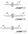 - The three example optical fiber arrangements are illustrated in Figure 8, 9 and 10. Figure 8 schematically illustrates an optical fiber arrangement for a point-source/point detector configuration, i.e. the optical fibers are configured and spaced so as to provide a scanning region or surface area and a detection region or surface area which have a small size and are more or less the same size. Figure 9 schematically illustrates an optical fiber arrangement for a point-source/large-area detector configuration i.e. the optical fibers-  40 and 42 are configured and spaced so as to provide a scanning region or surface area and a detection region or surface area which are not the same size i.e. the detection area is larger than in figure 8 - only the output fibers-  42 are moved away from the phantom. Figure 10 schematically illustrates an optical fiber arrangement for a large-area source/point-detector configuration i.e. the optical fibers are configured and spaced so as to provide a scanning region or surface area and a detection region or surface area which are not the same size i.e. the source area is larger than in figure 8 - only the output fibers-  40 are moved away from the phantom. Although the figures show that the size of the input and output areas or regions may be varied by displacing the fibres-  40 and 42 an other type of mechanism may of course be used to effect the change in area. The phantom was scanned using each of these configurations using a near-infrared imaging system as described by Y. Painchaud, A. Mailloux, M. Morin, S. Verreault and P. Beaudry, "Time-domain optical imaging: discrimination between scattering and absorption", Appl. Opt. 38, 3686-3693 (1999)- ). The scan was done by moving synchronously both the input and output fibers-  40 and 42 respectively along the surface of the medium in two dimensions in order to sequentially illuminate the entire surface. The detected signal was digitized and sent to a computer that was used to construct the images based of the series of measurements performed during a scan, each measurement corresponding to one pixel of the image.