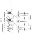 In this embodiment, a fast Fourier transform (FFT) of the digital signal valuesprovides signals at frequency bands (Nyquist zone channels) within one-half thesampling rate ("the first Nyquist zone") representing the converted analog signals. If the waveform is sampled at a rate less than twice its signal bandwidth (the Nyquistbandwidth), an undesirable overlapping between the adjacent periodic spectrumsoccurs - a well known phenomena known as aliasing. Accordingly, the sampling rateand the IF frequency band(s) are chosen to avoid loss of information due to aliasingyet provide improved efficiency in the use of the available Nyquist bandwidth.