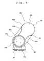 - Referring first to Fig. 1, there is schematically shown the generallayout of an endoscope. As seen in this figure, the endoscope 1 is largelyconstituted by a manipulatinghead assembly 2, anelongated insertioninstrument 3 which is extended out on the front side of the manipulatinghead assembly 2 for insertion into a patient's body cavity or the like, and auniversal cable which is led out on the rear side of the manipulatingheadassembly 2. For the functions required, theinsertion instrument 3 iscomposed of, from its fore distal end, a rigidtip end section 3a, ananglesection 3b and aflexible body section 3c.