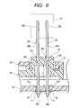 - In addition, as shown inFigs. 11 and12, a wideflat portion 26d is formed in anintermediate portion 26c of the terminal 26 by being bent so as to be parallel with themain board 21. Thisflat portion 26d is capable of freely abutting against aterminal pressing portion 35 of theterminal plate 30, which is disposed at a position opposing themain board 21 and spaced apart therefrom with predetermined clearance. Meanwhile, the wideflat portion 26d of the terminal 26 is capable of freely abutting against aterminal pressing portion 43 which is provided on the resin plate cover 40 covering theterminal plate 30 and spaced apart from theterminal plate 30 with a predetermined clearance. Namely, the wideflat portions 26d of the terminal 26 are respectively clamped by theterminal pressing portions 35 of theterminal plate 30 and the terminalpressing portions 43 of theplate cover 40.