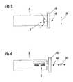 Zur Bestimmung des Betrages und der Richtung der von außen an die Schublade 3angreifenden Kräfte 20 weist die Anordnung erfindungsgemäß eineKraftmesseinrichtung 2 auf. Diese Kraftmesseinrichtung 2 kann über ein Zahnrad 17 indie Zahnstange in der Schiene 14 eingreifen. Alternativ hierzu sind jedoch auchzahlreiche andere Anordnungs- und Ausbildungsformen der erfindungsgemäßenKraftmesseinrichtung möglich. So kann die Kraftmesseinrichtung z.B. auch am Griff 16oder zwischen Frontpaneel 15 und Schublade 3 angeordnet sein. Allgemein kannvorgesehen sein, dass die Kraftmesseinrichtung 2 zwischen einem Frontpaneel 15 undeinem daran direkt anschließenden Teil des bewegbaren Möbelteils 3 angeordnet ist,oder dass die Kraftmesseinrichtung zwischen einem Frontpaneel 15 und derAntriebseinheit 5, vorzugsweise im Motor 6, angeordnet ist. In Fig. 5 ist hierbei eineVariante der Kraftmesseinrichtung 2 gezeigt, welche auf Betätigung des Griffes 16 invertikaler Richtung 21 ausgelegt ist. In Fig. 6 ist eine Variante gezeigt, welche Kräfte inhorizontaler Richtung 20 detektiert. Als Kraftmesseinrichtung 2 kommenunterschiedlichste Kraft- bzw. Beschleunigungsmesser in Frage. Dies können z.B.Dehnungsmeßstreifen, piezoelektrische Kraftaufnehmer oder elektromagnetischeKraftmesseinrichtungen, wie z.B. Tauchspuleninstrumente sein. DieKraftmesseinrichtung 2 sowie die Positionsmesseinrichtung 4 führen über geeigneteLeitungen der Regeleinrichtung 1 ein Kraftsignal bzw. Positionssignal zu, woraus in derRegeleinrichtung 1 ein Ansteuersignal für die Antriebseinheit 5 berechnet wird. Bei derMessung der von außen an die Schublade angreifenden Kräfte 20 wird in der Regelwie in der in Fig. 1 dargestellten üblichen Ausführungsform nur die inBewegungsrichtung der Schublade 3 verlaufende horizontale Kraftkomponente (durchdie Pfeilrichtung 20 gekennzeichnet) gemessen, da die vertikal angreifendenKraftkomponenten durch die Führungsschiene auf entsprechende nach dem Stand derTechnik ausgebildete Lager übertragen werden. Die Kraftübertragung von derAntriebseinheit 5, sowie die Anordnung der Positionsmesseinrichtung 4 und derKraftmesseinrichtung 2 können auch in anderer als der hier dargestellten Weiserealisiert sein. In Frage kommen hierzu z.B. Antriebe über Seilzüge, Zahnriemen oderanderweitig angetriebene Führungsschienen.To determine the amount and the direction of the outside of the