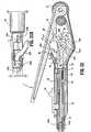 - As best seen inFIGS. 11 and16, aguide 81 engages anelongated rib 25a inhousing 26 and an elongated rib 25b incover plate 90 to slidingly mount theretractor 80 tohousing 26.Guide 81 is dimensioned slightly longer thanrib 25a to permit proximal movement of thefirst retractor 80 relative to thehousing 26 upon activation of thehandle 12. Preferably, aprotective tube 95 is telescopically disposed about thefirst retractor 80 and moves in conjunction with the slidingsleeve 32 by way ofslot 96 which securesmount 31 of the slidingsleeve 32 therein. It is anticipated thatprotective tube 95 also helps to restrict lateral movement of thefirst retractor 80 during retraction.Tube 95 also includes anelongated channel 97 which generally aligns withguide 81 located in thefirst retractor 80 to mount both components toribs 25a and 25b.
