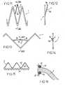 La bande 6 est en "NITINOL". Elle est reliée aux ondulations de la portion 3, à mi-hauteur de celles-ci, et comporte les aiguilles 7 au niveau de ses zones reliées à ces ondulations.