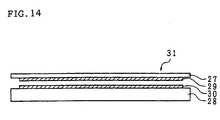 - First, a reference is made to Figure 14 constituted by a cross-sectional view schematically showing a major part of an arrangement of a touch panel used in the present example. As shown in Figure 14, thetouch panel 31 was a planar pressure sensitive element including a supporting substrate 28 on which atransparent electrode 30 was formed for detecting a pressed position and amovable substrate 27 on which a transparent electrode 29 was formed for detecting a pressed position, thetransparent electrodes 29 and 30 being disposed so as to oppositely face each other with an air gap sandwiched therebetween. Note that both themovable substrate 27 and the supporting substrate 28 used here had no birefringence.