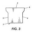 FIG. 3 illustrates a front view of the ink sticks of FIG. 2. Inembodiments, each of the ink sticks 2A-D has a lowerguide element portion 7formed as part of an extremity of the ink stick body. In the illustratedembodiment, theguide element portion 7 extends downward from near one edge of the ink stick body. Thisguide element portion 7 fits into, and slidinglyengages, a channel guide rail 26 (see FIG. 16) of afeed channel 25 of the ink stickloading bin orloader 16. The ink stickguide element portion 7 is one of thesupporting features of the ink sticks, and provides a first area, line, or point ofcontact between the ink stick and the feed channel. Each ink stick also has asecondguide element portion 8 formed on the opposite side of the ink stick bodyfrom the first guide element. The secondguide element portion 8 can be formednear the upper portion of the inks stick, as a portion of one side of the top of theink stick. Thesecond guide portion 8 provides a second area, line, or point ofcontact between the ink stick andthe feed channel.