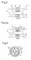 Darüber hinaus kann der Hohlkörper 3 wie in Fig. 9 und Fig. 9a dargestellt, eventuell noch einoder mehrere axiale Begrenzungselemente 16 aufweisen, die die axiale Auslenkbarkeit desProbekörpers 3 begrenzen. Dies ist bei der passiven magnetischen Lagerung wie in Fig. 9und Fig. 9a gezeigt von besonderem Vorteil, da die passive magnetische Lagerung axial imwesentlichen instabil ist und erst im Betriebszustand durch den Elektromagneten 8 eine axialeStabilisierung erreicht werden kann. Das kann auch dann sinnvoll sein, wenn der DurchflussQ des Fluids 2 durch den Hohlkörper 3 starken kurzeitigen Druckschwankungen unterworfenist. Selbstverständlich ist das Vorhandensein von radialen Begrenzungselementen 16 nichtauf Ausführungsformen beschränkt, bei welchen der Probekörper 3 durch magnetischwirkende Befestigungsmittel 12 radial stabilisiert wird. Die radialen Begrenzungselemente 16können natürlich auch bei anderen Ausführungsvarianten der erfindungsgemässenMessvorrichtung 1 vorhanden sein.In addition, the