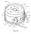 - In one embodiment, the drive portion is fabricated from a non-transparent material and a path for thebeams 884 from theradiation source 884 to thereflector 885 is provided. The path in one preferred embodiment is an opening or hole such asport 154 or 156 (Figure 14) in the side of thedrive portion 881 that creates a path or tunnel through which thebeams 884 travel unimpeded. Of course, the opening may be replaced with a path of transparent material to allow the beams to travel to thereflector 885 while also providing a protective cover for the internals of thedrive portion 881. A path is also provided downstream of thereflector 885 to allow thebeams 884 to travel through thedrive portion 881 internals without or with minimal degradation. Again, the path may be an opening or tunnel through the drive portion leading to theportion 202 or be a path created with transparent materials. Thebeams 884 in these tunnel path embodiments enter thedrive portion 881 one time per revolution of thedrive portion 881, which provides an acceptable rate of sampling. Alternatively, areflector 885 may readily be provided that extends circumferentially about the center axis of thedrive portion 881 to provide a sampling rate equivalent to the rate ofbeam 884 transmission. Of course, the positions of theradiation source 882 and thedetector 886 may be reversed and the angle of thereflector 885 and transmission of thebeams 884 may be altered from those shown to practice the invention.