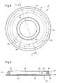 Au-dessus de sa partie périphérique 45, le couvercle 22 comporte une partie annulaire 50 sensiblement cylindrique dont la face extérieure présente une gorge 51 pour recevoir une garniture annulaire d'étanchéité 52 formée dans ce cas par un joint torique en élastomère. Afin de réduire la friction, ce joint peut être fait d'un matériau autolubrifiant. La gorge 51 est fermée vers le haut par une rondelle métallique plate 54 qui est soudée en des points 53 sur le sommet de la partie annulaire 50 de couvercle. Le diamètre extérieure de cette rondelle est sensiblement égal à celui de la face extérieure cylindrique 55 de la partie annulaire 50. La rondelle 54 comporte deux parties saillantes radialement vers l'intérieur, qui sont diamétralement opposées et forment deux verrous 56 du dispositif de fixation à baïonnette du couvercle. Dans le cas présent, les deux verrous 56 sont plats et situés dans le même plan que le reste de la rondelle 54, mais dans d'autre modes de réalisation ils pourraient être inclinés ou pliés en Z, selon les besoins. D'autre part, le nombre des verrous 56 pourrait évidemment être supérieur à deux.Above its